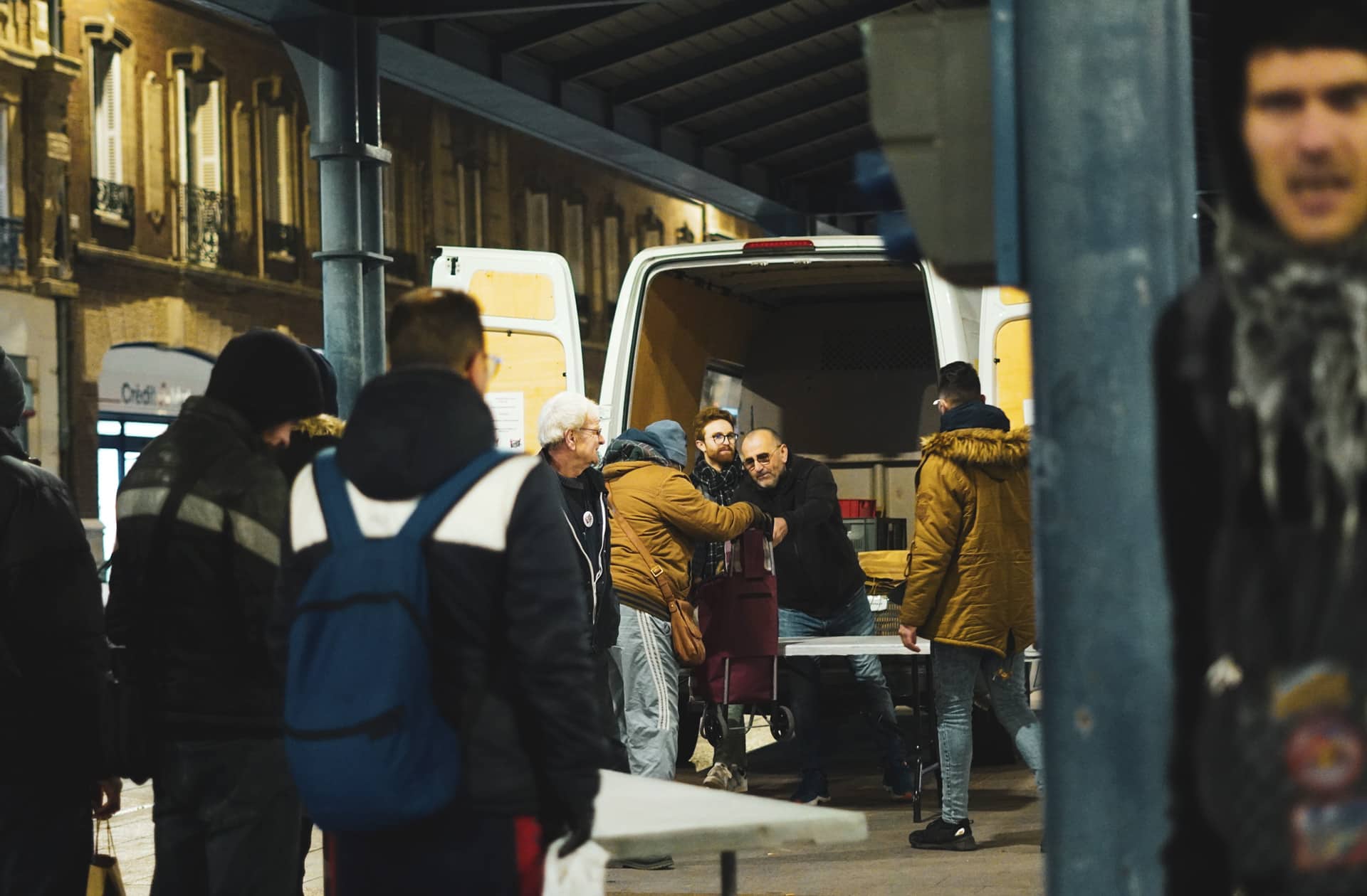 Les camions du Cœur apportent dans la rue soupes, sandwichs, et boissons chaudes aux personnes sans domicile fixe.
